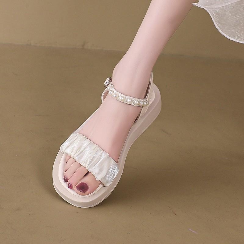 Модная удобная обувь для женщин Римские сандалии 2025 Лето Ремешок с пряжкой Костюм Женский Бежевый Мягкие сабо На танкетке Открытый носок Прозрачный каблук Гладиатор