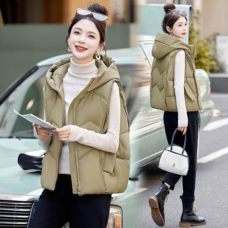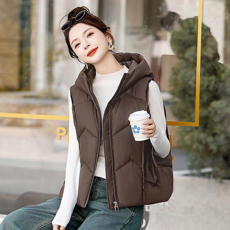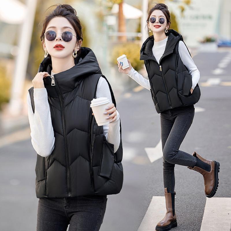 Осень и зима новый темпераментный хлопковый жилет с капюшоном женский холодный и теплый короткий жилет хлопковый жилет приталенная куртка