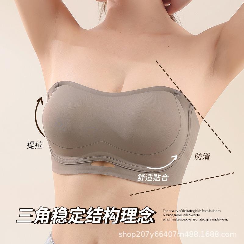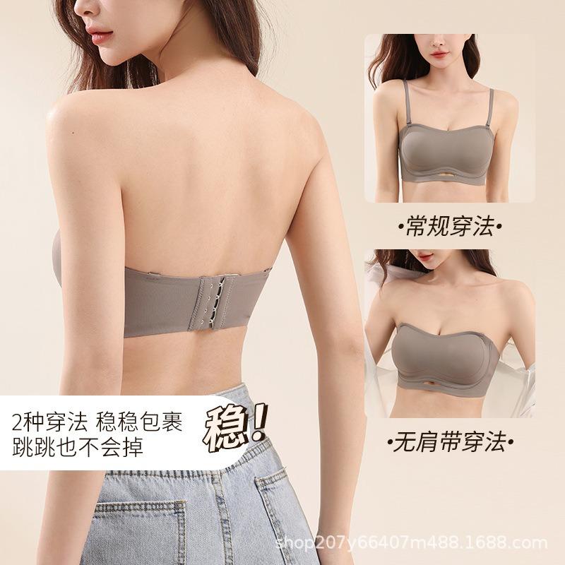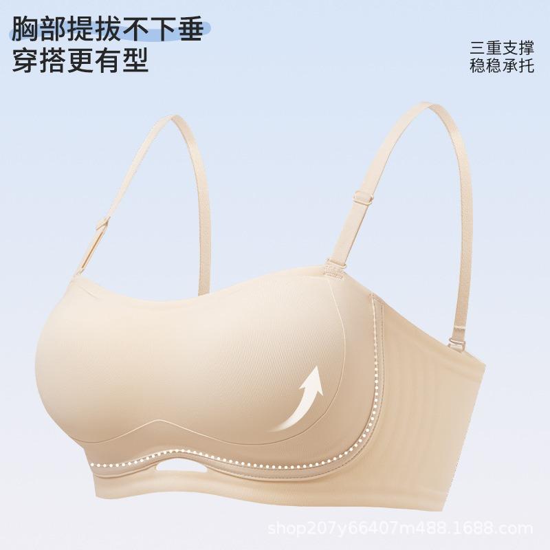 Бесшовное нижнее белье женское собирающее нескользящее с открытыми плечами артефакт без следов тонкая спинка топ-труба анти-просвечивающий бюстгальтер лето