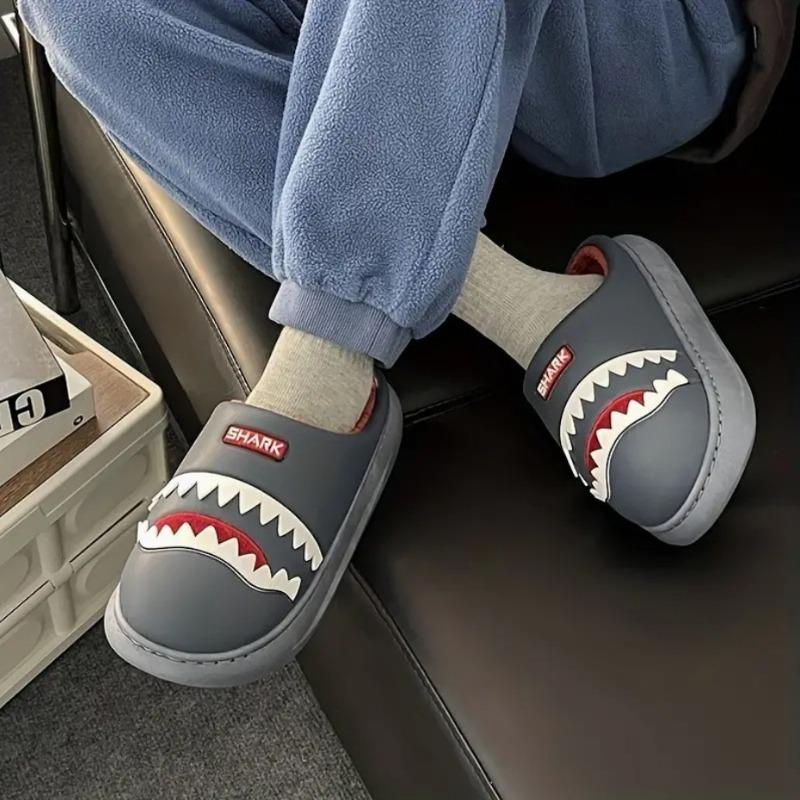 Хлопковые тапочки мужские акула зимние смешные домашние тапочки с толстой подошвой теплые нескользящие студенческие общежитие хлопковые шлепанцы мужские