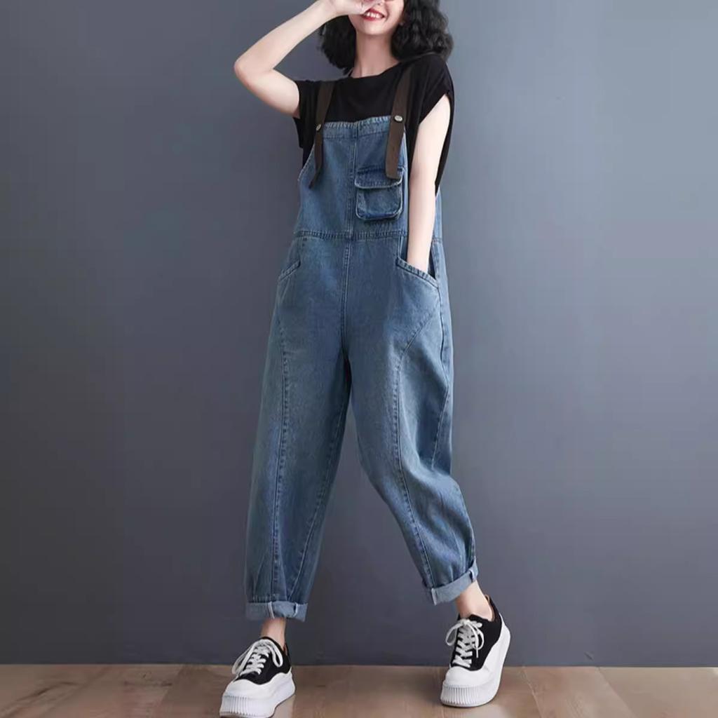 Женский свободный джинсовый комбинезон в корейском стиле: Ретро комбинезон на подтяжках для весны