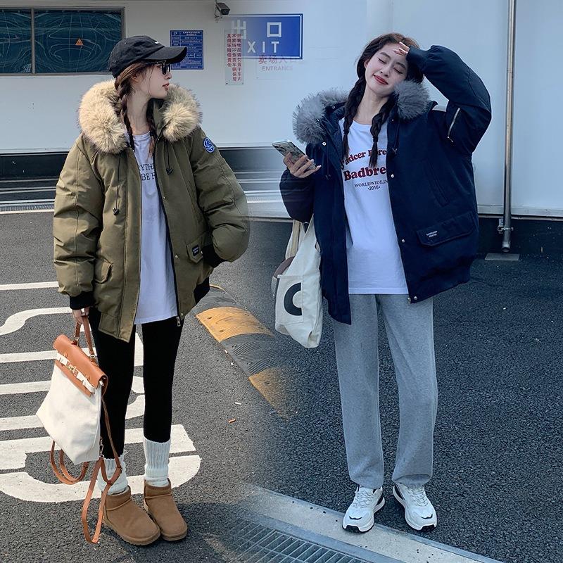 Женская короткая пуховая хлопковая куртка с большим меховым воротником, свободная, утолщенная, с большим карманом, в стиле милитари, с капюшоном, трендовая — купить товар онлайн с бесплатной доставкой по всему миру!