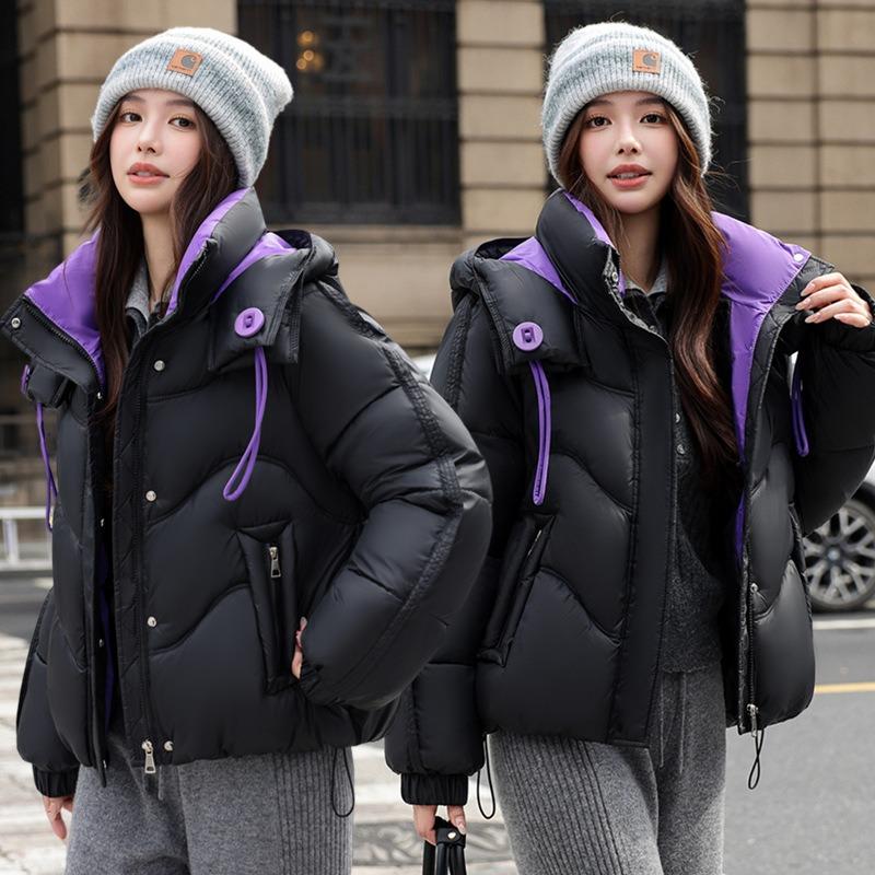 Женская короткая одежда с капюшоном, защищающая от холода, контрастных цветов, зимняя новинка, повседневная одежда на хлопковой подкладке с большими пуговицами и хлопковые куртки — купить товар онлайн с бесплатной доставкой по всему миру!