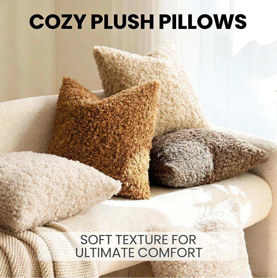 Набор из 2 мягких наволочек для декоративных подушек из искусственного меха под тедди, квадратные плюшевые наволочки для дивана, кушетки, кровати, бохо декор для дома (18x18 дюймов, Нейтральные цвета)