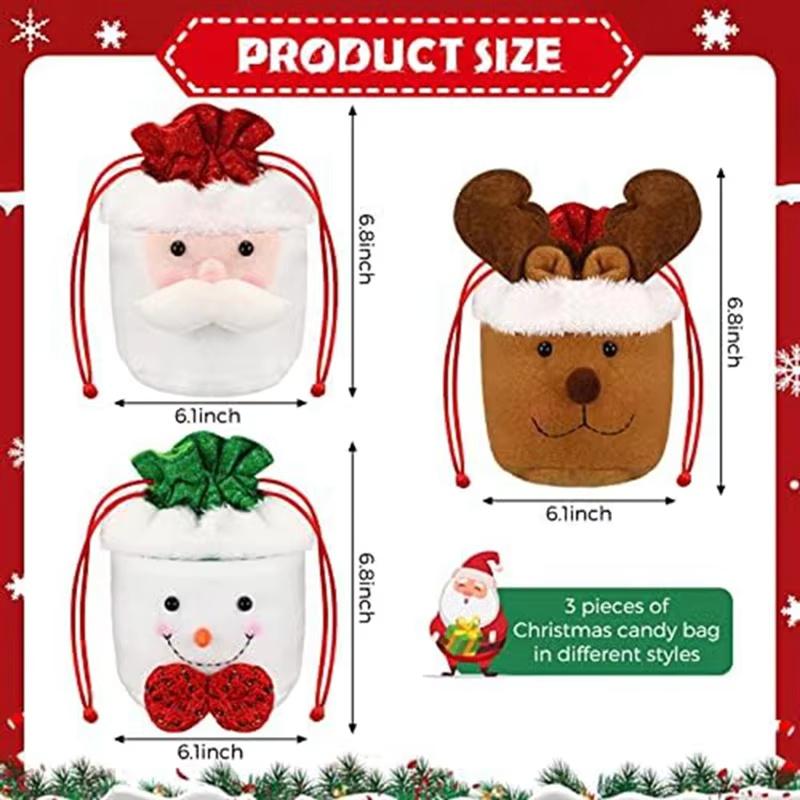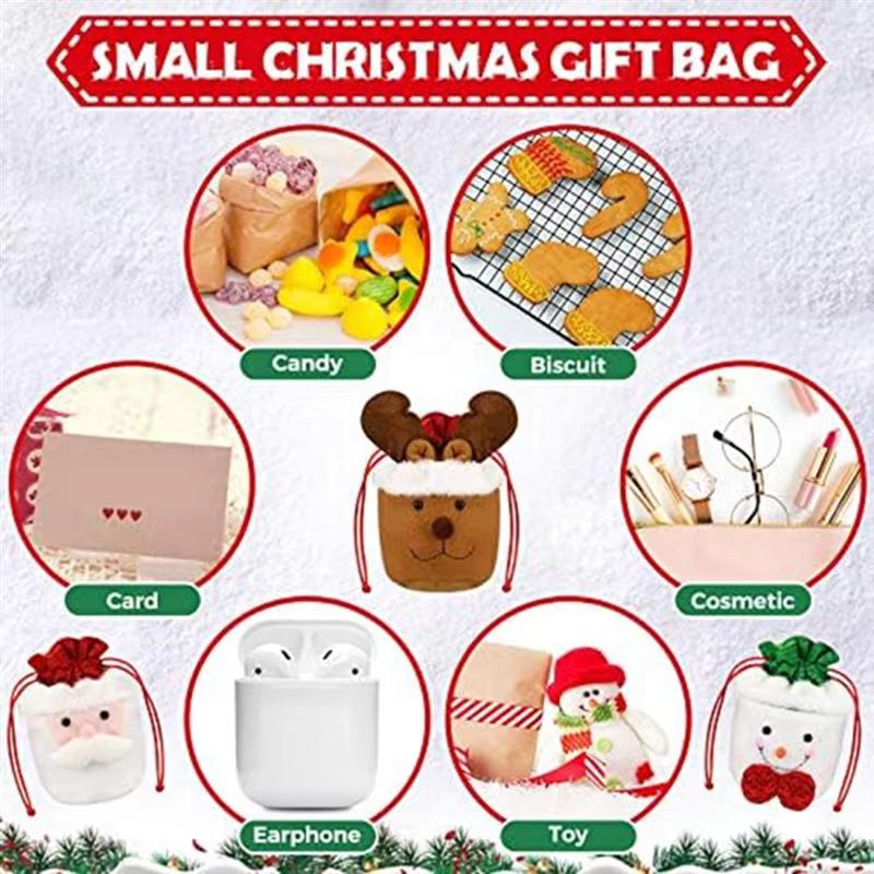 Подходящий размер: Размер рождественского подарочного мешочка на завязках составляет примерно 15x18 см, он подходит для хранения подарков, таких как яблоки, конфеты, шоколад, печенье, рождественские открытки и другие небольшие рождественские подарки, он милый и привлекательный, подходит для детей.;