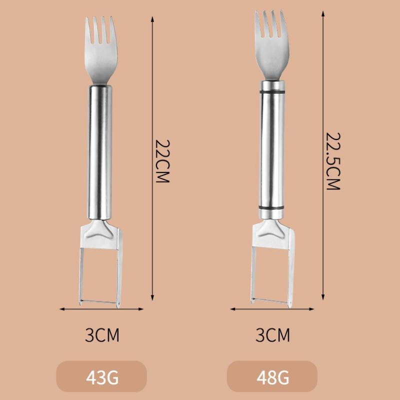 2-в-1 Нержавеющая сталь Фрукторезка Салат Фрукторезка Инструмент Двойная головка Арбузная вилка-резка Кухонные аксессуары Гаджеты