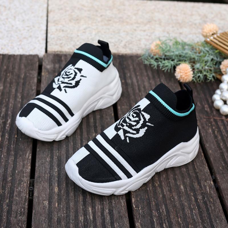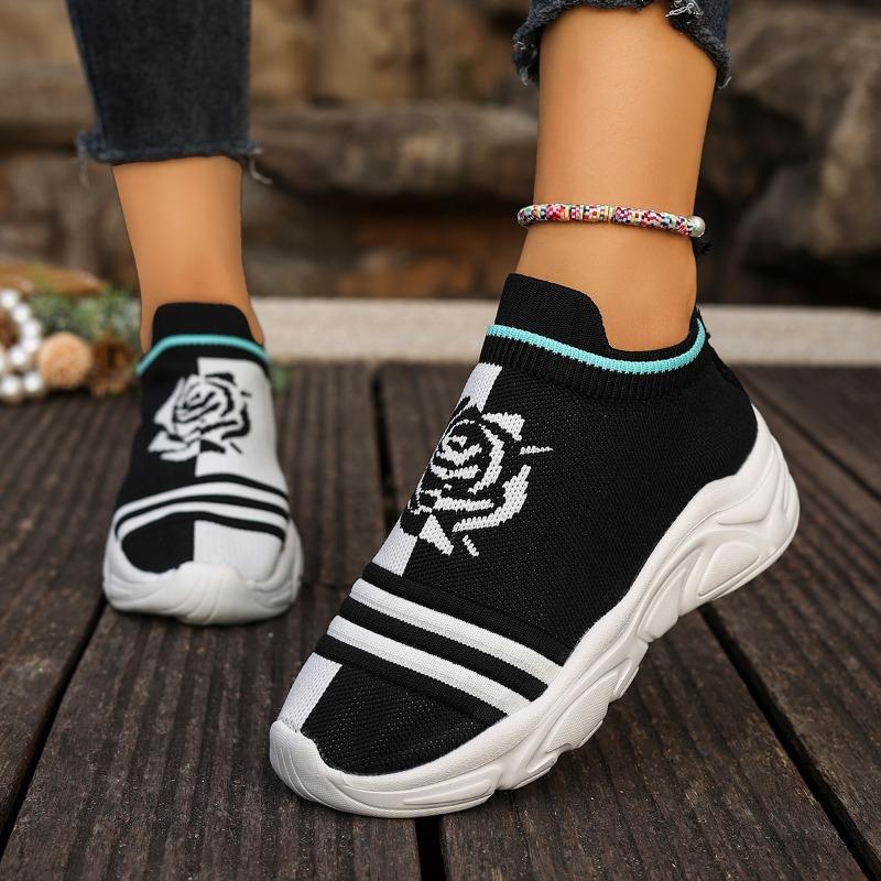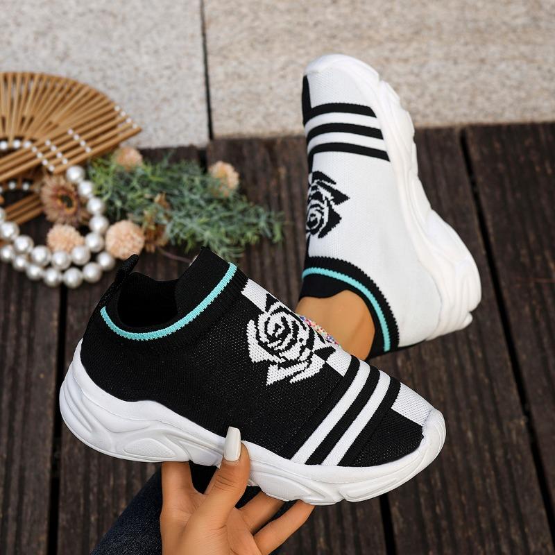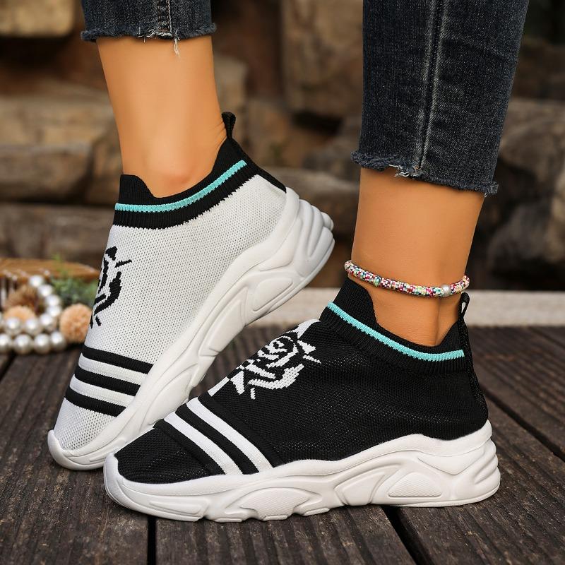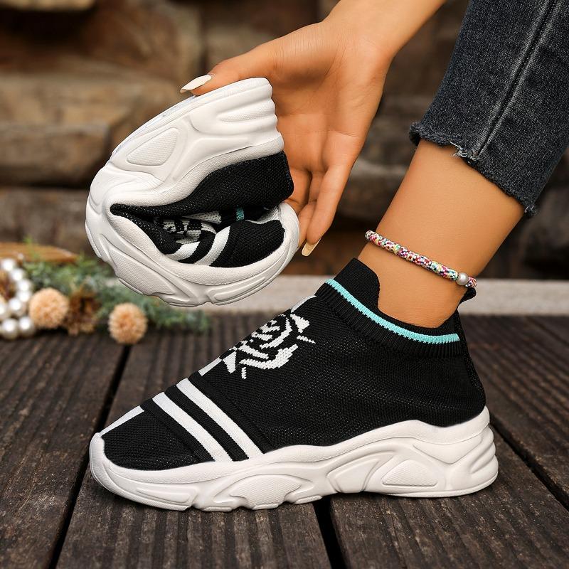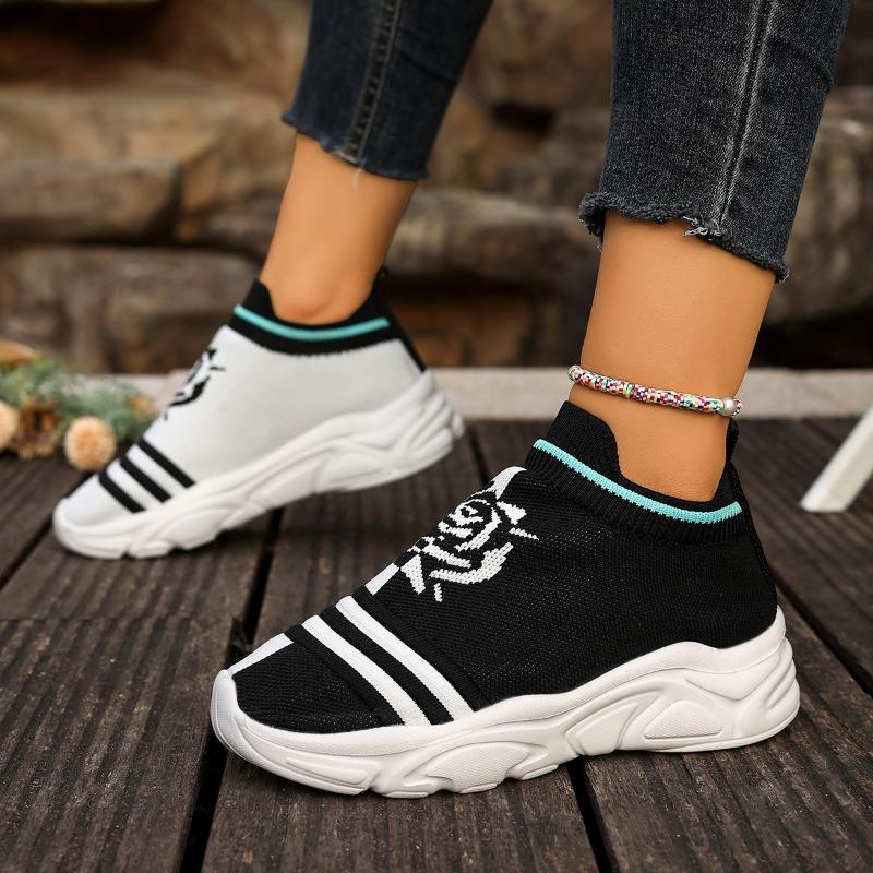 Мода 2025 Женская мода Полосатые кроссовки из трикотажной ткани Эластичная ткань Слипоны Повседневная обувь-носки Нескользящая Обувь для бега на мягкой подошве