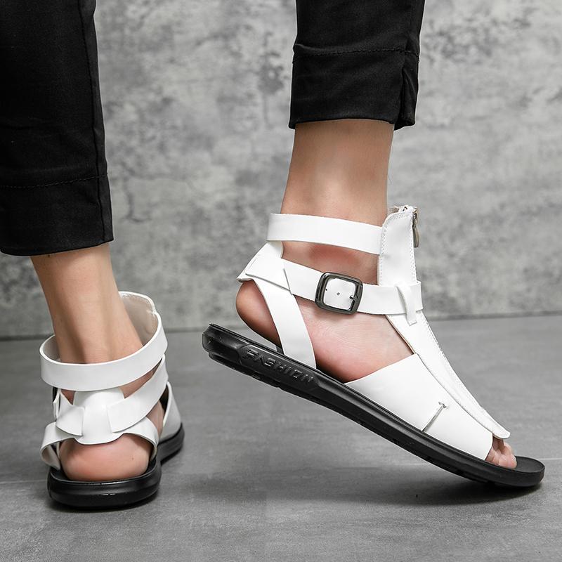 Мода 2025 Роскошный дизайнерский бренд Римские сандалии для мужчин Летние мужские плоские сандалии Повседневная пляжная мужская обувь Ботинки Кожа Высокое качество