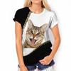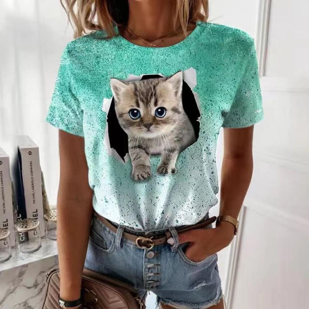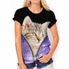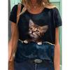 Милая женская модная повседневная футболка с круглым вырезом и короткими рукавами с 3D-цифровым принтом кошки