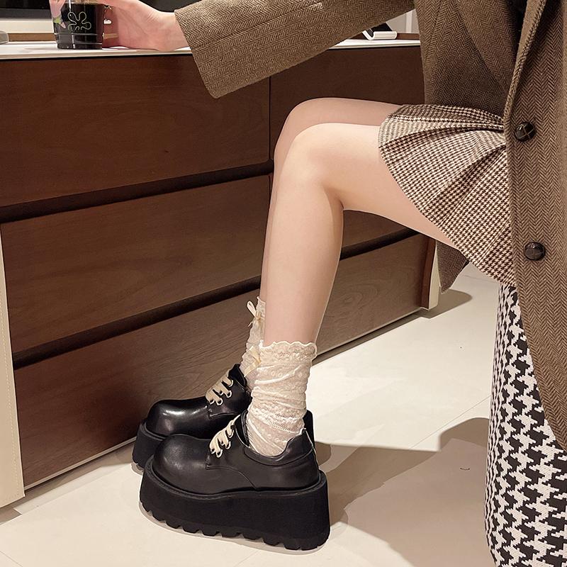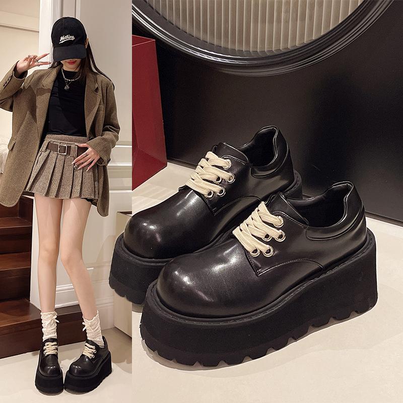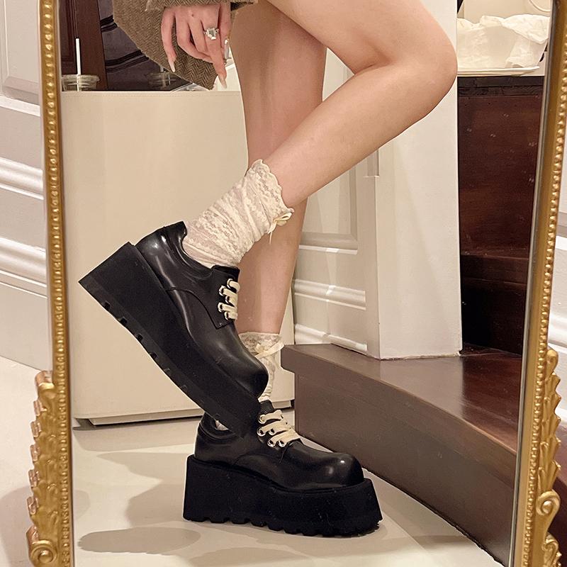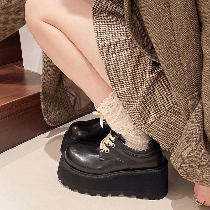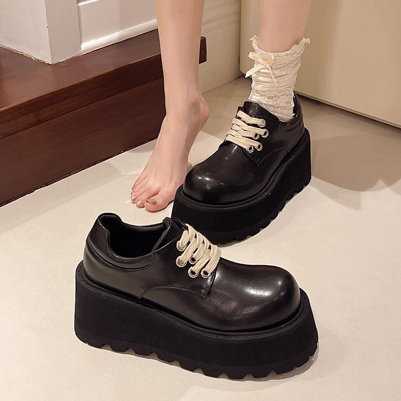 Мода 2025 Новая Женская Обувь Платформа Обувь Модный Стиль На Все Случаи Черные Балетки Платье Кожаная Обувь Модная Обувь на Толстой Подошве
