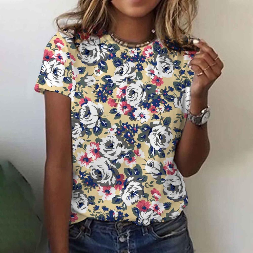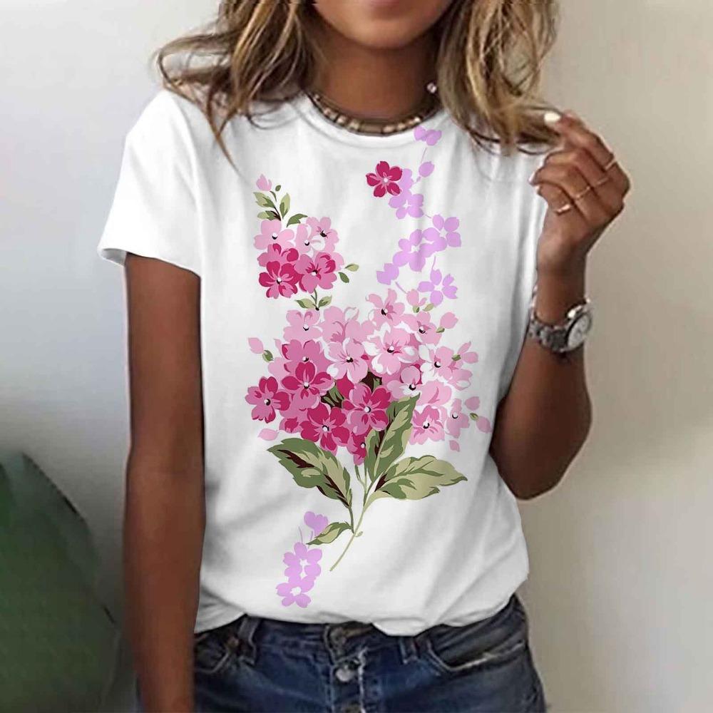 Красочная цветочная женская модная повседневная футболка с круглым вырезом и короткими рукавами с 3D-цифровой печатью