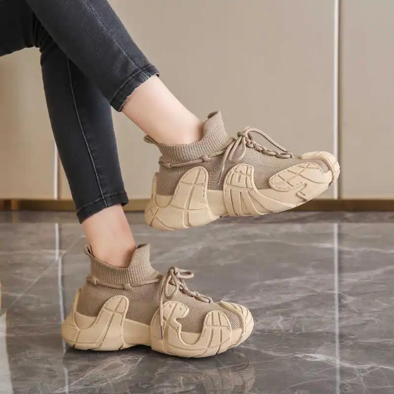 Fashion Thick Heel Round Toe Size 35 Women Shoes Vulcanize Luxury Woman Basketball Red Sneakers Sports Overseas Athletic Sneskers