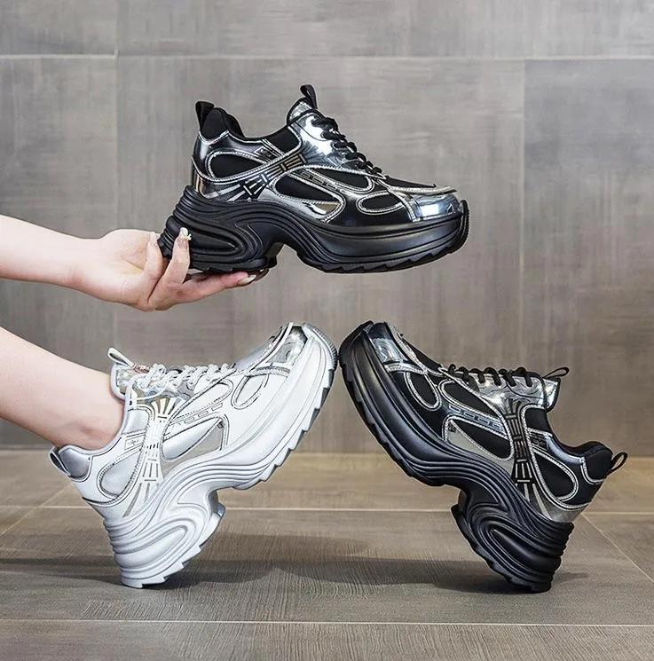 Модные женские кроссовки на массивной подошве 9 см, женская повседневная обувь из натуральной кожи, женские весенние модные кроссовки, обувь для ходьбы, платформа, танкетка