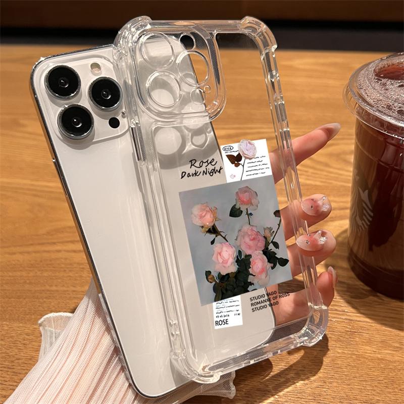 Чехол для iPhone 16 15 14 13 12 11 Pro Max 7 8 15 16 Plus X XR XS Max SE Милый прозрачный силиконовый мягкий чехол с розовым цветком — купить товар онлайн с бесплатной доставкой по всему миру!
