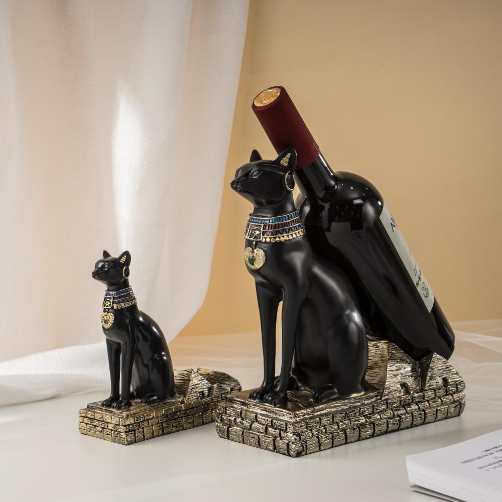 Египет Анубис Винная полка Бастет Бог Кошка Подставка для винных бутылок Смола Искусство и ремесло Украшение для бара