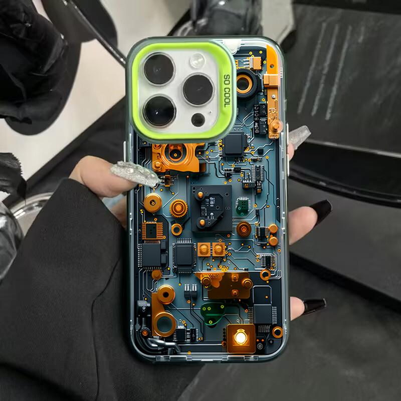 Advanced Circuit Board Electroplate Silver IMD Phone Case For iPhone 16 15 14 13 12 11 Pro Max 7 8 16 Plus 16E SE X XS XR Cover