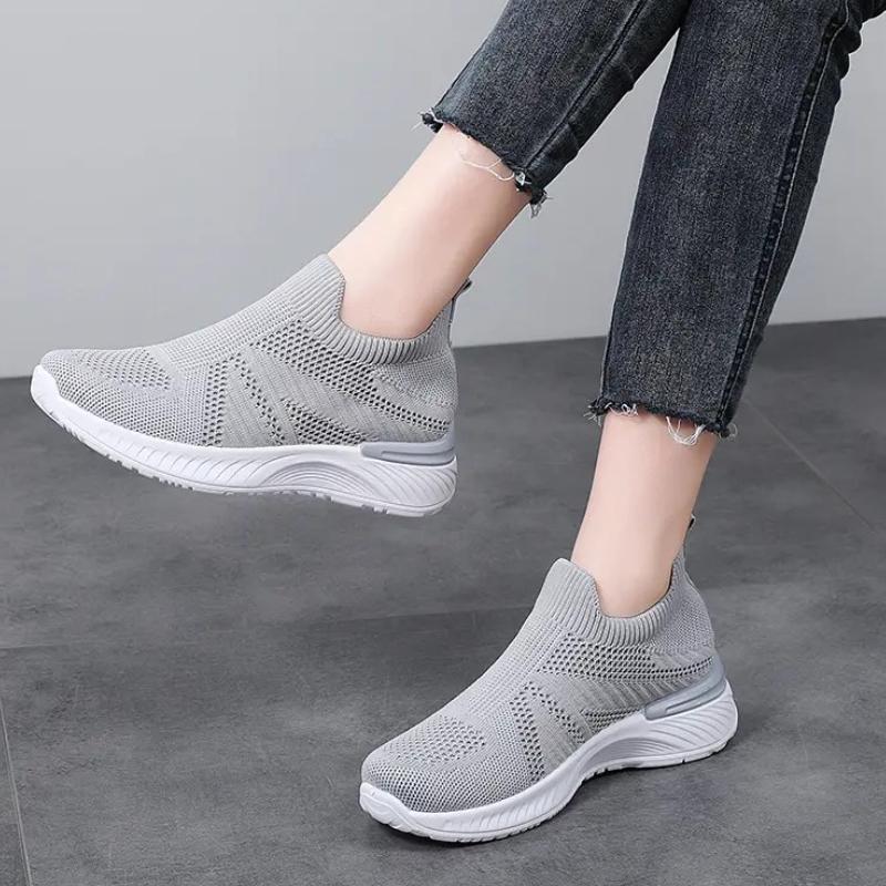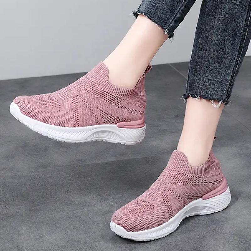 Дышащие сетчатые женские кроссовки для бега, вязаные повседневные кеды, мягкая обувь для ходьбы, слипоны, балетки, носки-обувь