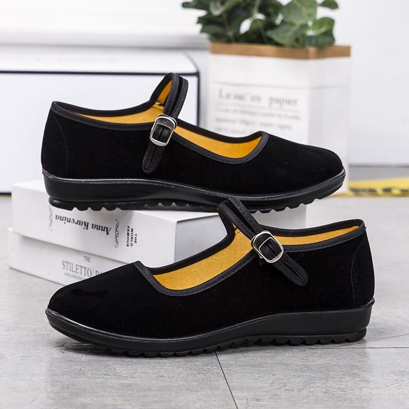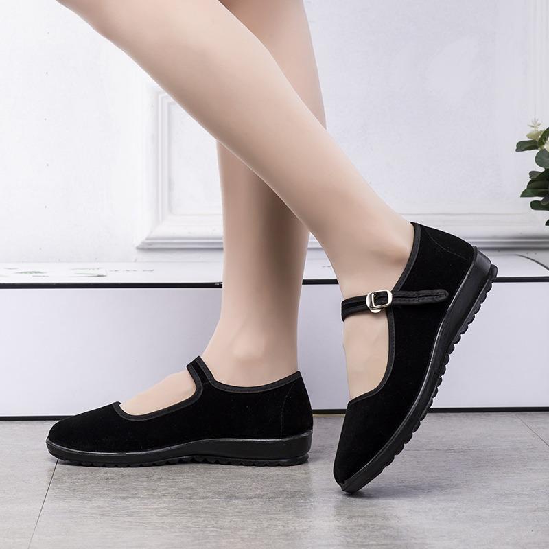 Старые пекинские тканевые туфли женские повседневные танцевальные балетки гостиничные для мамы нескользящие дышащие нескользящие износостойкие черные тканевые туфли