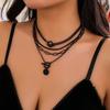 Модная панк черная многослойная цепочка на ключицу для мужчин и женщин, простой геометрический кулон в форме сердца, набор ожерелий, ювелирный подарок