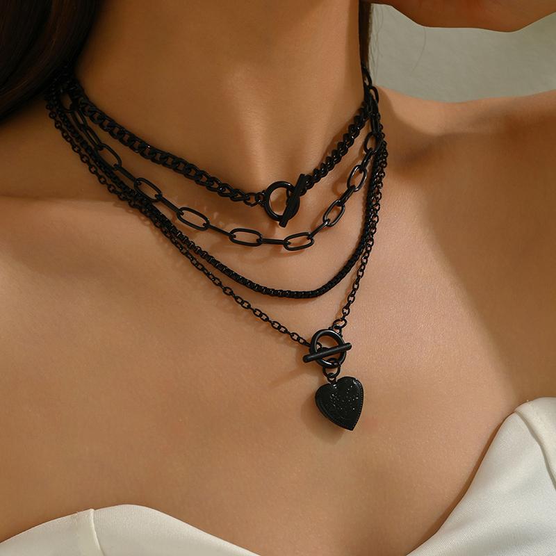 Модная панк черная многослойная цепочка на ключицу для мужчин и женщин, простой геометрический кулон в форме сердца, набор ожерелий, ювелирный подарок — купить товар онлайн с бесплатной доставкой до всему миру!