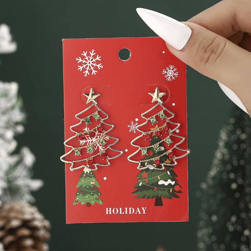 Рождественские красочные серьги-елки с бриллиантами, серьги-звездочки, женские нишевые серьги-пусеты из сплава со стразами, украшение