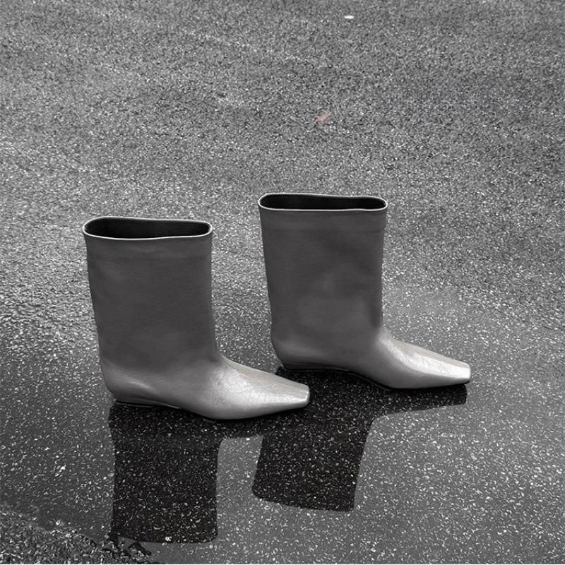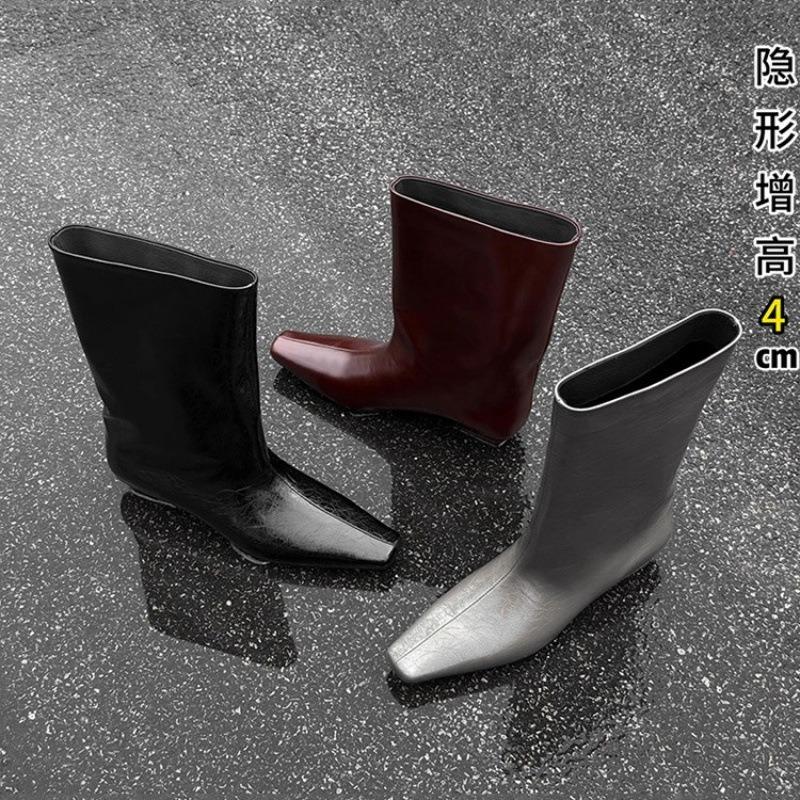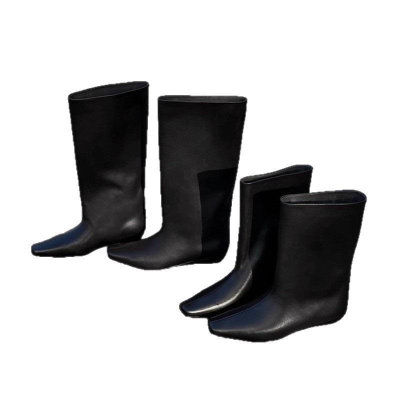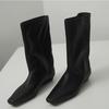 Версия из коровьей кожи~ осень и зима новые простые с квадратным носком универсальные темпераментные на низком каблуке рыцарские сапоги женские с рукавом полусапоги женские