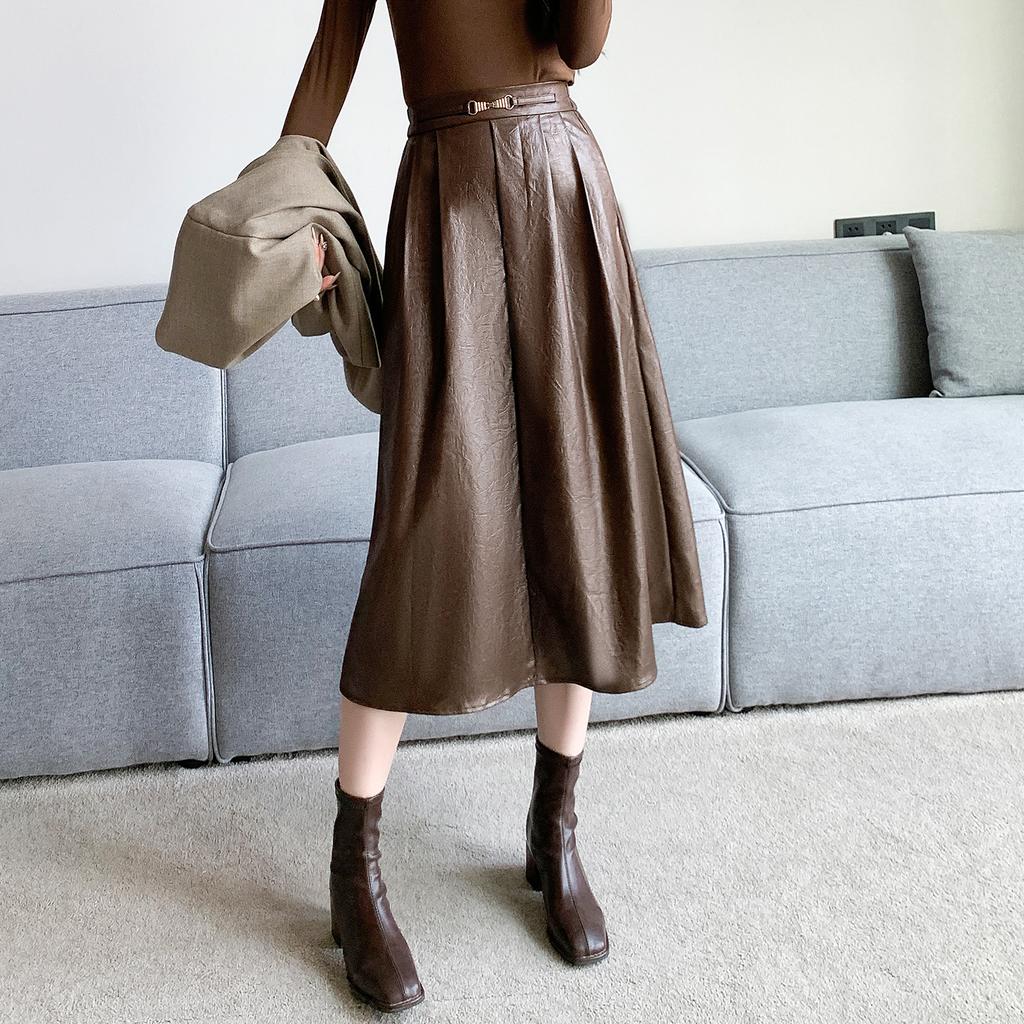 Dimanaf 2025 Новые Осенние Большие Размеры Длинные Женские ПУ Юбки Эластичная Талия Оверсайз Дама Элегантные Юбки с Завышенной Талией Однотонные — купить товар онлайн с бесплатной доставкой по всему миру!