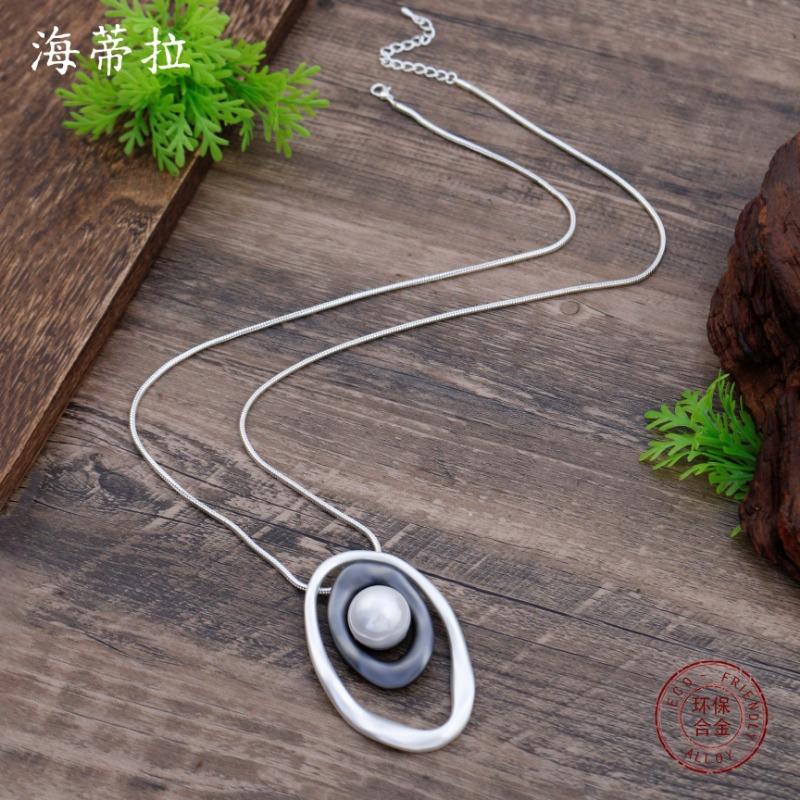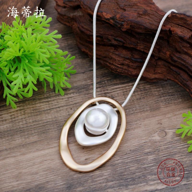 Новое матовое полое геометрическое кольцо длинная подвеска женская мода универсальное неправильной формы овальное длинное ожерелье