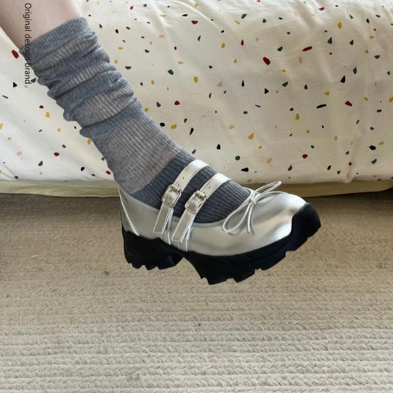 Новые женские кожаные туфли J Mary Jane на толстой подошве, увеличивающие рост, цветные, с перфорацией, одинарные туфли, в стиле колледжа, маленькие кожаные туфли для женщин