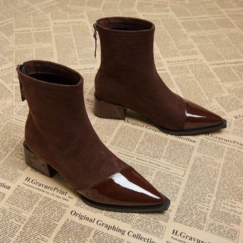 Мода 2025осень Простые Универсальные Женские Туфли Высокого Качества Женские Сексуальные Остроносые Удобные На Среднем Каблуке Молния Короткие Ботинки Большого Размера