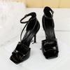 Fashion Black Patent Leather Ankle Strap Buckle Heeled Sandals Women Sexy Square Open Toe High Heels Summer Elegant Party Office Shoes
