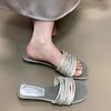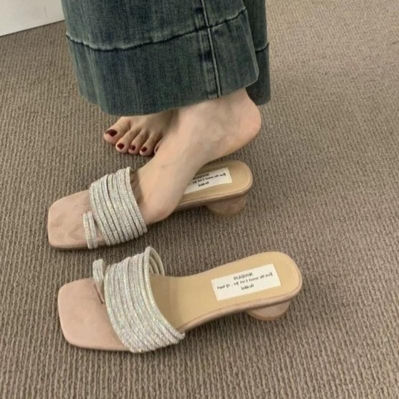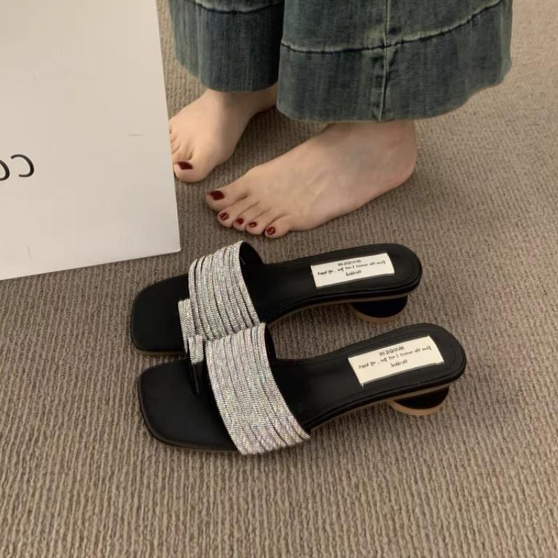 Fashion 2025 Summer Women Crystal Clip Toe Slippers Concise Thick Low Heel Slide Ladies Outdoor Dress Sandalias