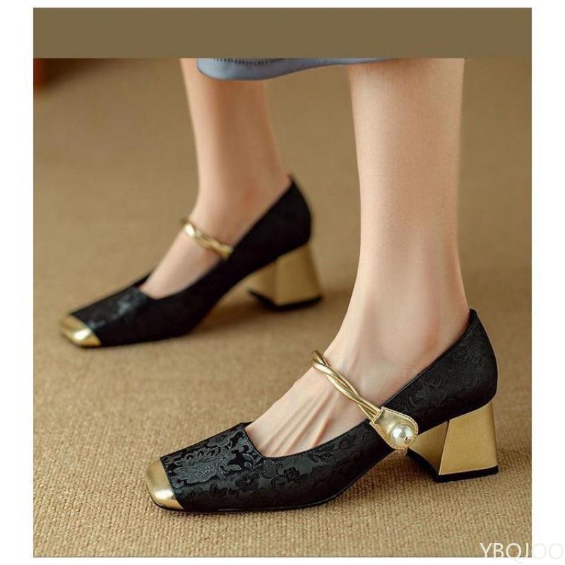 Модная весенняя новинка, туфли светлых тонов, средней высоты, на одинарном каблуке, с цветными блоками, квадратным носком, универсальные, повседневные, удобные женские туфли