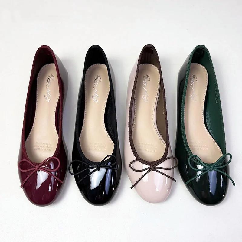 Fashion Cozy Soft Patent Leather Ballet Flats Women Cute Butterfly-Knot Decoration Flat Loafers Elegant Mary Jane Dance Shoes for Women