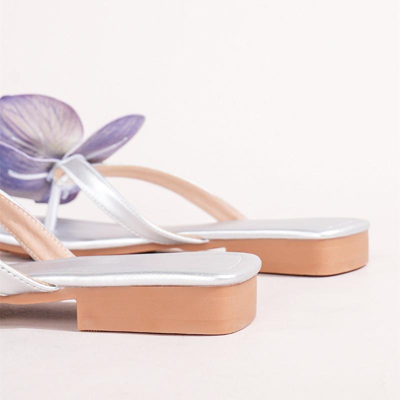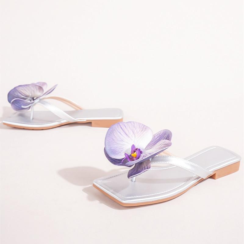Модные Роскошные Цветочные Женские Сандалии Модные На Среднем Каблуке С Квадратным Носком Открытый Носок Большого Размера Женские Шлепанцы Простые Удобные Женские Балетки
