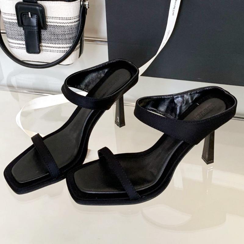Fashion High Quality Square Toe Narrow Band Women Sandals Summer Sexy Open Toe Thin Heel Slide Sandals Fashion Comfortable Designer Shoe