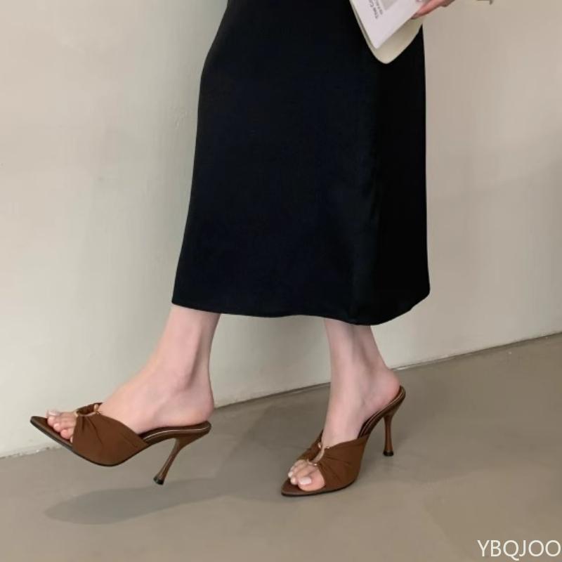 Модные летние сексуальные модные босоножки с открытым носком на высоком каблуке с плиссированными металлическими пряжками, простые универсальные туфли-лодочки на высоком каблуке