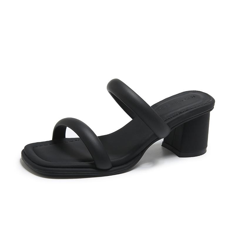Модные высококачественные женские сандалии с квадратным носком и узким ремешком, летние сандалии-слайды с открытым носком и каблуком-копытцем, простые удобные сандалии на высоком каблуке