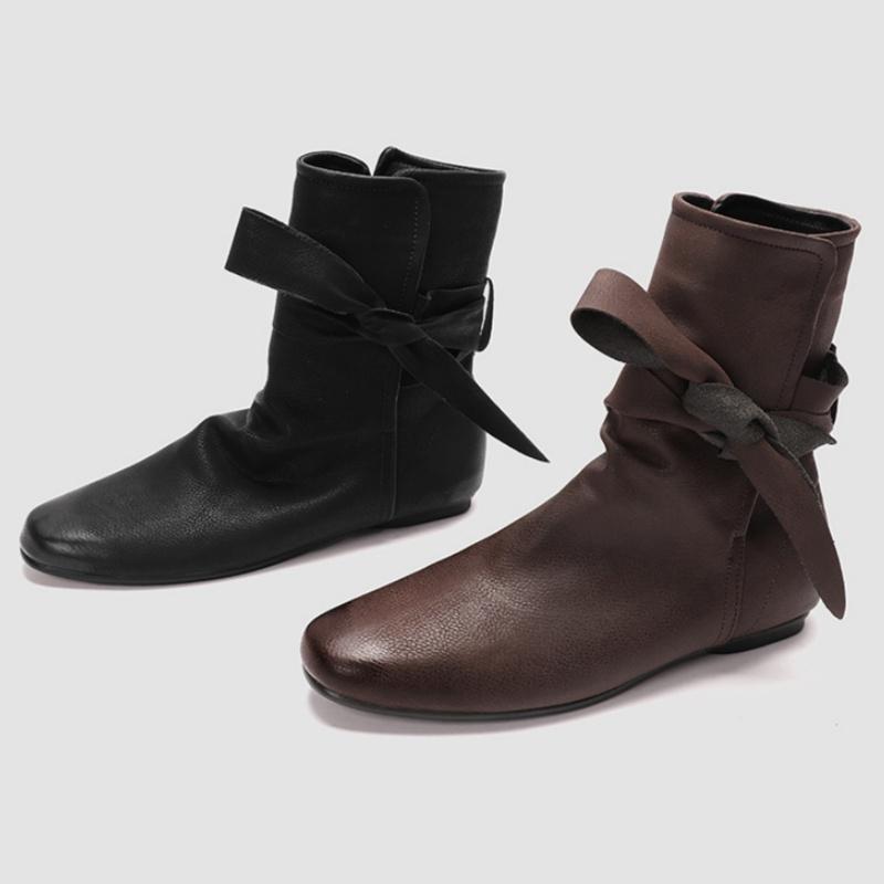 Fashion Design Vintage Bow Short Boots 2025 Autumn French Style Soft Sole Non-slip Low Heel Boots Solid Color Versatile Women's Boots