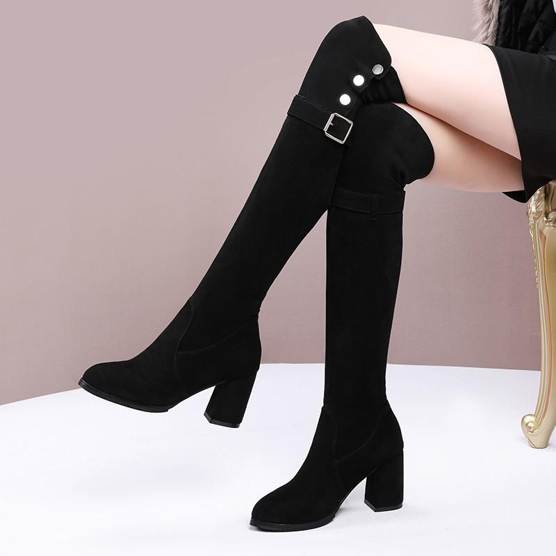 Модные женские длинные сапоги 2024 Осень и Зима Новинка Ботфорты выше колена Теплые Эластичные Стройнящие Сапоги для верховой езды — купить товар онлайн с бесплатной доставкой по всему миру!