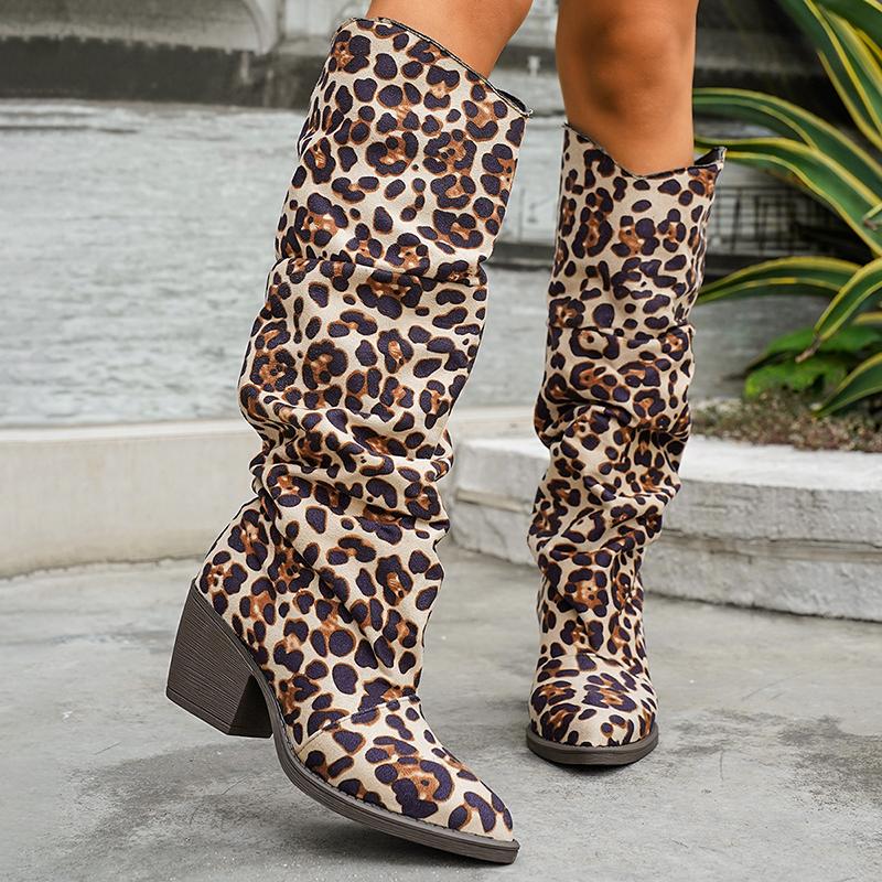 Модные ботфорты леопардовой расцветки больших размеров для женщин, на массивном высоком каблуке, слипоны, длинные ботинки, женская осенне-зимняя модная обувь для вечеринок