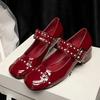 Модные женские туфли-лодочки из лакированной кожи высокого качества, туфли Мэри Джейн в японском стиле Лолита, с ремешком на щиколотке и квадратным носком, на высоком каблуке, Zapatos Mujer
