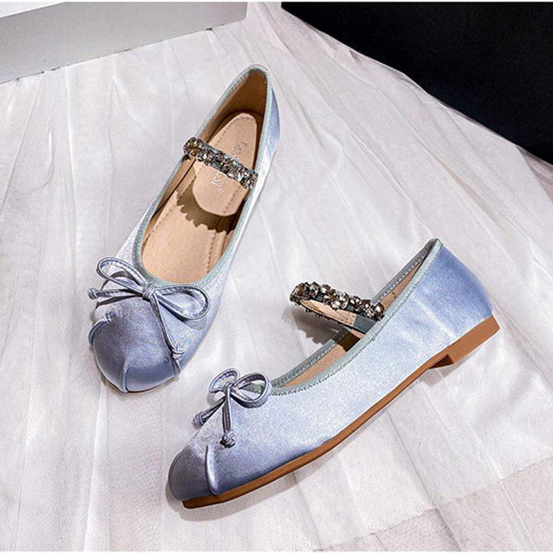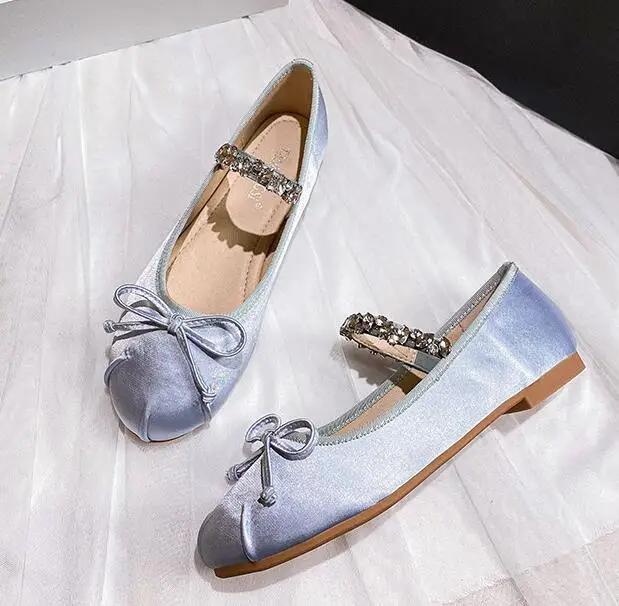 Модные Роскошные Сатиновые Балетки с Украшением из Страз Женские Элегантные с Бантом Шелковый Дизайн Туфли Мэри Джейн для Женщин Легкие Удобные Лоферы