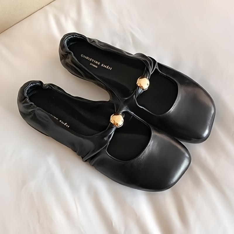 Fashion 2025 New Women's Flat Shoes Fashionable Versatile Square Head Shoes Mary Jane Leather Shallow Mouth Bottom Elegant Flat Shoes