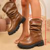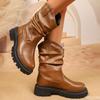 Модные Модные Ботинки до середины икры на массивной платформе для женщин Плиссированный дизайн Искусственная кожа Ковбойские ботинки Женские Осенне-зимние Ботас Де Мухер 2025