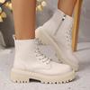 Мода Мода Золотая ПУ кожа Платформа Ботильоны Женщины Толстая подошва Шнуровка Боевые ботинки Женские Осенне-зимние Массивный каблук Короткие ботинки
