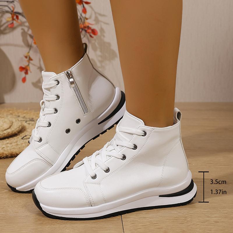 Модные белые высокие кроссовки на платформе для женщин 2025 Осень Легкие повседневные спортивные туфли Женские ботильоны на толстой подошве из ПУ кожи — купить товар онлайн с бесплатной доставкой по всему миру!
