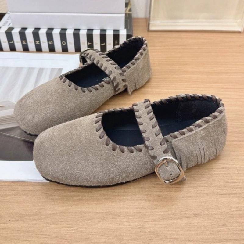 Модная высококачественная плетеная обувь из искусственной замши на плоской подошве 2025 Мэри Джейн Элегантная повседневная женская обувь Металлическая пряжка на ремне Удобные плоские лоферы