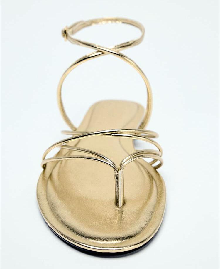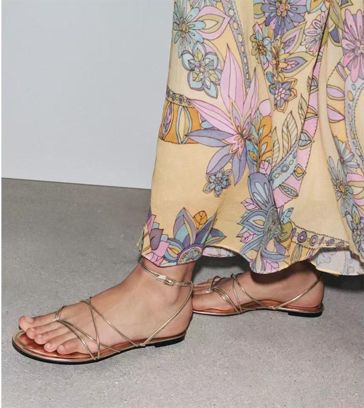 Fashion Gold Narrow Strap Cross Strap Design Flat Sandals Women Summer Sexy Women's Flip Flops Elegant Ankle Strap Dress Shoes Sandalias