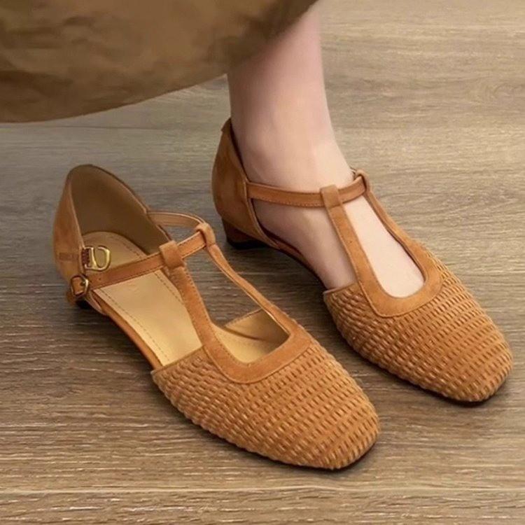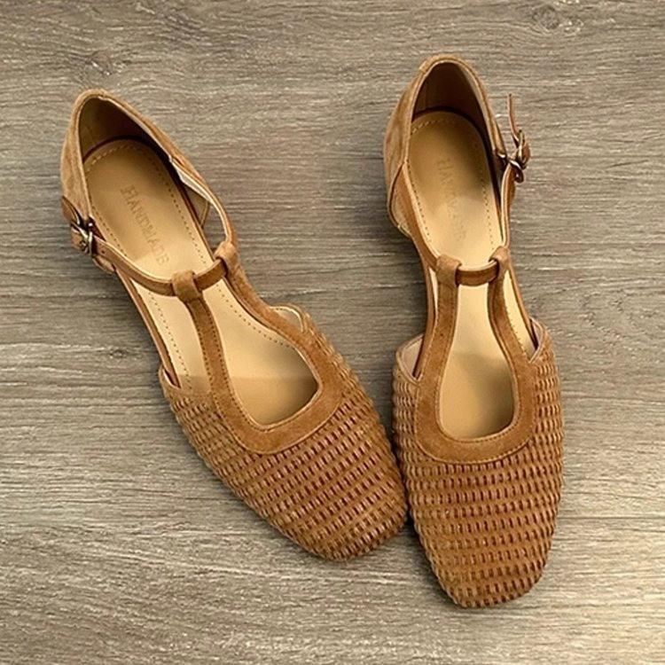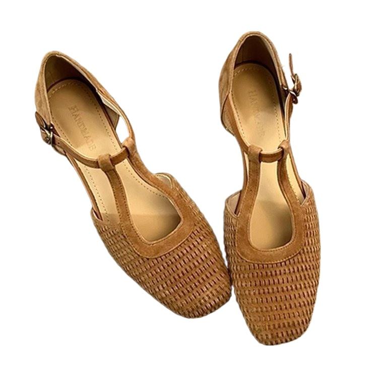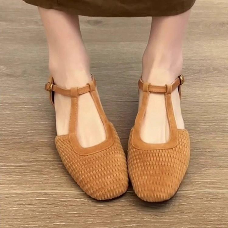 Мода Новая Мода Женские Ажурные Узкие Ремешки из Коровьей Кожи Т-образные Балетки Сандалии Круглый Носок Высокое Качество Повседневная Обувь Zapatos Mujer